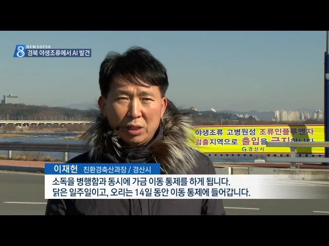 ◀ANC▶ 올겨울 조류인플루엔자 사태가 심상치 않습니다. 청정지역이던 대구와 경북에서도 첫 감염 야생조류가 발견됐습니다. 여] 정부는 방역단계를 최고등급으로 높였는데요. 자칫 최악의 상황으로 치닫지 않을까 불안감이 커지고 있습니다. 박재형 기자입니다. ◀END▶ ◀VCR▶ 경산시 하양읍 인근 강에서 큰고니 사...