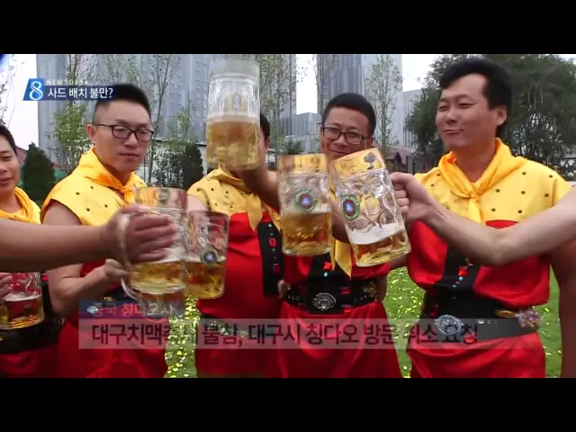 ◀ANC▶ 중국 칭다오시가 대구치맥페스티벌 불참을 통보했습니다. 다음 주 예정된 칭다오국제맥주축제에 대구시 대표단의 방문도 무산됐습니다. 여]칭다오와 대구는 1993년 자매결연을 맺고 20년 넘게 우의를 다져왔습니다. 이번 결정은 사드 배치 결정에 대한 반발 때문으로 보이는데 앞으로 교류중단이나 경제보복으로 ...