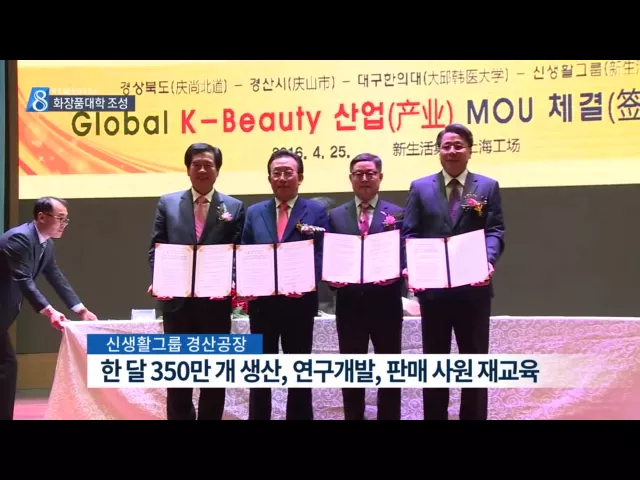 ◀ANC▶ 어제 이 시간을 통해 중국에 있는 화장품 그룹이 경북에 대규모 투자를 하기로 했다는 소식, 중국 현지에서 취재해 보도해드렸습니다. 오늘 관련 소식 하나 더 전합니다. 여] 신생활그룹이 짓기로 한 경산 공장은 그 규모가 중국 공장을 능가할 것으로 보여 경북의 화장품 산업 발전에 큰 도움이 될 것으로 보입니...