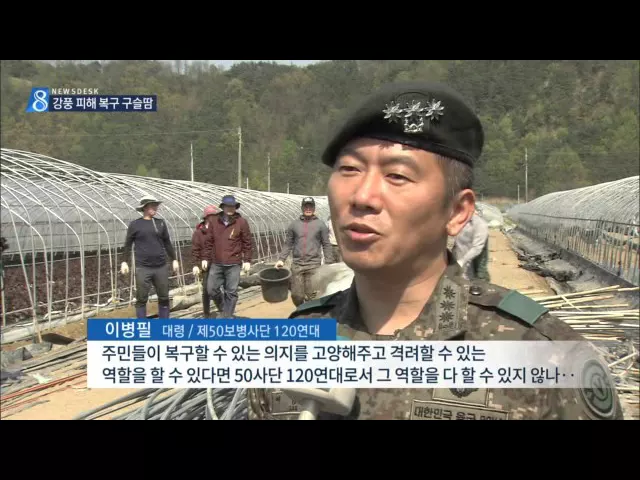 경상북도와 성주군, 농업기술원, 농협 50사단 군인·경찰 등 540여 명은 오늘 오전부터 가장 강풍 피해가 심했던 성주군에서 긴급 복구에 나서 찢어진 비닐하우스와 철골등을 복구했습니다. 참외는 파손된 비닐하우스가 빨리 복구되지 않으면 생육 장애와 병해충이 발생할 우려가 있어 조기 복구가 시급한 실정입니다.