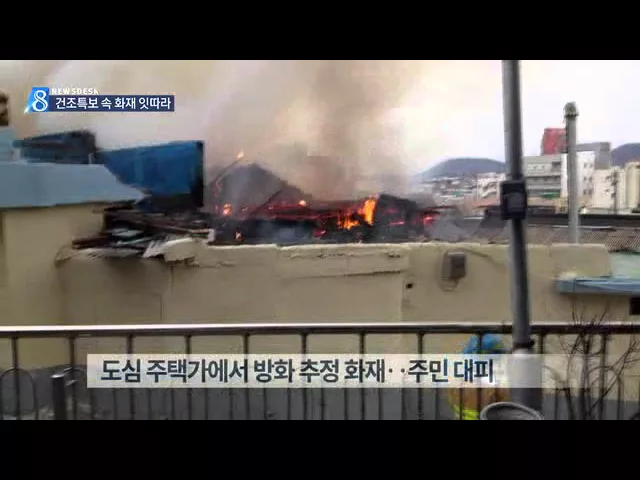 ◀ANC▶ 주말인 오늘 화재도 잇따랐습니다. 도심 주택가에서 방화로 추정되는 불이나 주민들이 대피하기도 했으며 대구와 경주에서는 산불로 아까운 수목들이 재로 변했습니다. 박재형 기자가 보도합니다. ◀END▶ ◀VCR▶ 시커먼 연기가 도심 주택가를 뒤덮었습니다. 오늘 오후 6시쯤 대구시 동구 효목동의 한 한옥집에...