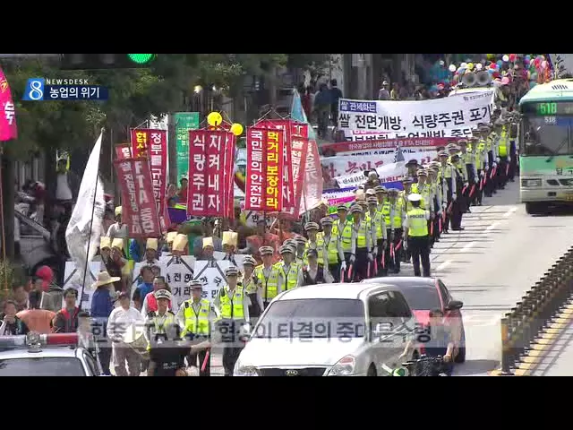 ◀ANC▶ 한·중 FTA 14차 협상을 앞두고 농·축산물 수급 안정대책과 쌀 시장 전면 개방에 반대하는 농민들의 집회가 잇따랐습니다. 농민들은 농업과 농촌을 살릴 수 있는 특단의 대책을 촉구했습니다. 박재형 기자가 보도합니다. ◀END▶ ◀VCR▶ 한·중 FTA에 반대하는 농축산인들의 성난 목소리가 울려퍼집니다. ◀SYN...