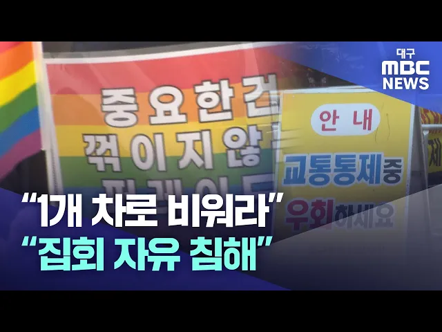 ◀앵커▶2023년 대구 퀴어문화축제에서 대구시는 '불법 도로점용이다', 경찰은 '적법 집회다', 맞서면서 물리적 충돌을 벌였는데요. 2024년도 충돌이 빚어지는 것 아니냐는 우려가 나오는 가운데, 경찰이 축제 조직위 측에 2개 차로인 대중교통전용지구의 1개 차로는 비우라며, 예년과 다른 결정을 내렸습니다. 집회 자유와 ...