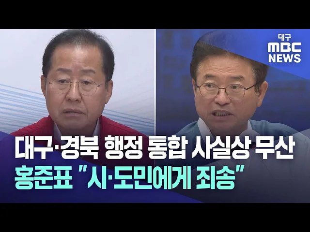 ◀앵커▶홍준표 대구시장이 8월 27일 오후 자신의 SNS에서 대구 경북 행정·통합이 무산됐다고 사실상 선언했습니다.최근 대구시와 경상북도가 서로의 의견을 좁히지 못하면서 통합 무산 가능성이 제기됐었는데요,경북 도의회에서 대구시의 일방적이고 성급한 행정 통합 추진에 대한 비판이 커진 게 결정적인 요인이 된 것으로...