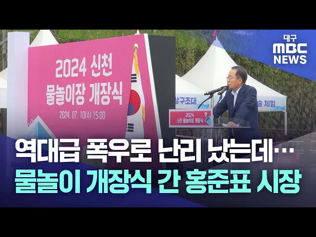 조국혁신당 대구시당은 논평을 통해 "대구에서 폭우로 목숨을 잃는 사고가 발생했고 시민 수백 명이 대피하고 일부는 고립되는 사고가 있었다"며 "참혹한 날에 홍 시장이 '물놀이 개장식'에 참석해 또다시 재난 대비에 소홀한 행태를 보여줬다"고 비판했습니다.이어 "재난이 속출하는 상황에 시장이 뭘 해야 하는지도 모르...