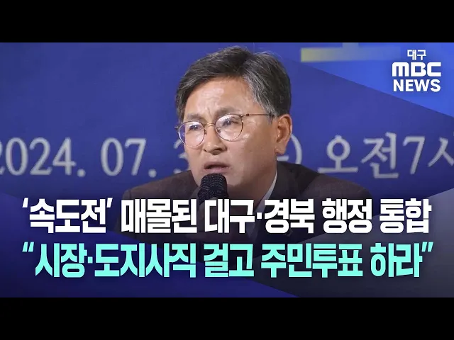 ◀앵커▶홍준표 대구시장과 이철우 경북도지사가 대구·경북 행정 통합을 밀어붙이고 있는데요.박성만 경북도의회 의장이 방향성 문제는 물론 민주적 절차도 지키지 않고 있다며 강하게 문제를 제기했습니다.시도지사 직을 걸고 주민투표를 해야 한다며 정치적 책임도 강조했습니다.보도에 조재한 기자입니다.◀기자▶박성만 경...