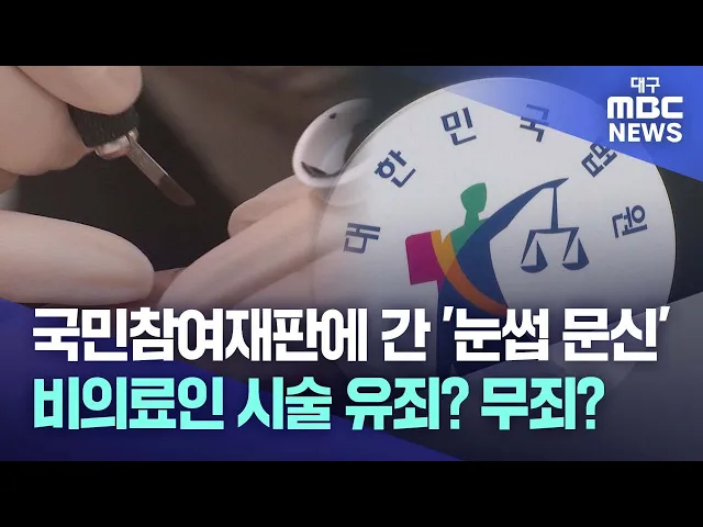 ◀앵커▶눈썹 문신 관련 재판은 수십 년 동안 계속 있었지만, 이번 재판은 유독 큰 관심을 끌고 있습니다.이전과 달리 처음으로 국민참여재판으로 열리기 때문인데요.일반 국민이 배심원으로 참여해 '유죄냐, 무죄냐?'를 결정합니다.세세한 법리 적용보다 보편적인 인식이 크게 작용할 것으로 보입니다.조재한 기자가 보도합...