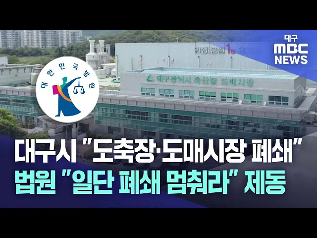 ◀앵커▶대구시가 강행하고 있는 대구시 도축장과 축산물 도매시장 폐쇄가 법원에서 제동이 걸렸습니다. 운영업체가 대구시의 폐쇄 공고 효력을 정지해달라며 냈던 가처분 신청을 받아들인 겁니다.업체 측은 대구시 행정이 법을 어겼을 가능성을 인정받은 것이라며 추가로 법적 대응을 이어갈 방침도 밝혔습니다.조재한 기자...