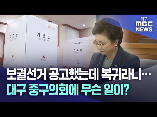 ◀앵커▶대구 중구의회 의원 2명이 의원직을 잃어 1월 31일 보궐선거를 치르기로 공고됐습니다.당장 1월 9일부터는 거소투표 신고도 시작하는데, 황당한 일이 벌어졌습니다. 제명당했던 의원이 법원에 제기한 효력정지 가처분 신청이 받아들여진 건데요,3주밖에 남지 않은 선거를 치러야 할지 말아야 할지, 선관위조차 결정하...