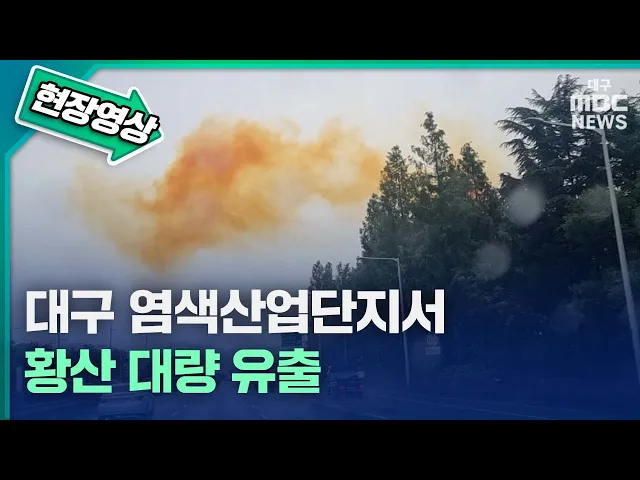 대구의 공단에서 황산이 대량 유출됐습니다. 7월 13일 오전 8시 46분 대구시 서구 비산동 서대구 염색산업단지 공동폐수 1 처리장에서 황산 1~2톤가량이 유출됐습니다.유출된 황산은 방류벽에 막혀 외부로 흐르지 않았지만 대기 중으로 퍼지면서 주황색 연기가 치솟으며 119 등에 신고가 잇따랐습니다.현재까지 황산 유출에...