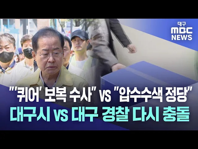 ◀앵커▶이번 압수수색을 두고 홍준표 시장은 퀴어축제 충돌에 대한 보복이라고 주장하고 있습니다. 경찰은 영장 신청과 발부 등의 일정만 보더라도 퀴어축제 충돌과는 무관한 정당한 법 집행임을 알 수 있다며 반박하고 있습니다.퀴어축제를 둘러싼 경찰과 대구시 사이 사상 초유의 충돌 이후 갈등이 확산하는 양상입니다. ...