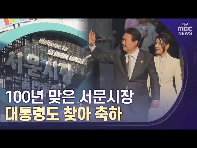 ◀앵커▶대구 서문시장이 현재 자리에 들어선 지 100년이 됐습니다.전국을 대표하는 전통시장일 뿐 아니라 정치적 상징성도 매우 큰 곳입니다.선거 때면 보수 정치인들의 발길이 끊이지 않는데요. 100주년 기념식이 열린 4월 1일, 윤석열 대통령까지 참석했습니다.보도에 조재한 기자입니다.◀기자▶지금의 서문시장 일대는 일...