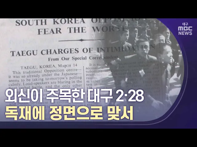 ◀앵커▶2·28 민주운동을 해외에 가장 먼저 알린 영국 신문 '더 타임즈'를 처음으로 확인했다는 보도, 얼마 전 해드렸는데요.이 기사는 2·28을 단순한 돌발 시위가 아니라 암울했던 시대에 드러난 민주주의 열망으로 기록했습니다.2·28이 없었다면 독재정권이 계속됐을 것이라는 역사적 의미를 담고 있다는 평가를 받습니다....
