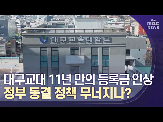 ◀앵커▶대구 교육대학교가 등록금을 올리기로 했습니다. 11년만입니다.교대 측은 학생들의 교육 환경 개선 등을 위한 불가피한 조치라고 밝혔습니다.대부분 대학이 10년 넘도록 정부의 등록금 동결 정책 때문에 울며 겨자먹기로 등록금을 올리지 않았는데요, 그동안 눈치만 보던 다른 대학들도 변화 조짐을 보이고 있습니다....