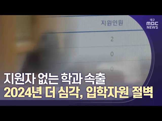 ◀앵커▶대입 정시 모집 마감 결과, 상당수 지역대의 경쟁률이 올라 좋을 것 같지만 속사정은 그렇지 않다는 보도, 최근 해드렸습니다.대학에 따라서는 당장 문을 닫아도 이상하지 않을 만큼 심각한 위기를 맞고 있습니다. 지원자가 한 명도 없는 학과가 한 둘이 아닙니다. 조재한 기자가 취재했습니다. ◀기자▶대구 인근의 A ...