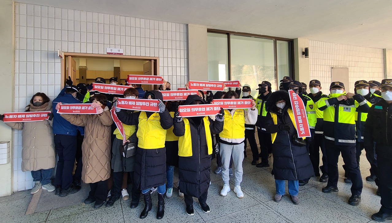 민주노총 "의무휴업일 변경 항의 마트 조합원 연행" 규탄
