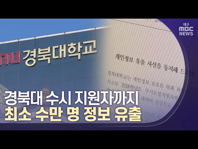 ◀앵커▶경북대학교 구성원들의 개인정보를 재학생 2명이 무더기로 유출됐다는 보도, 얼마 전 있었는데요. 개인 정보는 학교 구성원뿐 아니라 과거 대학 입시에 지원했던 수험생까지 대거 포함된 것으로 확인됐습니다.취재기자와 관련 소식 살펴보겠습니다. 조재한 기자 우선 처음 상황부터 짚어보죠. 맨 처음 알려진 게 지난...