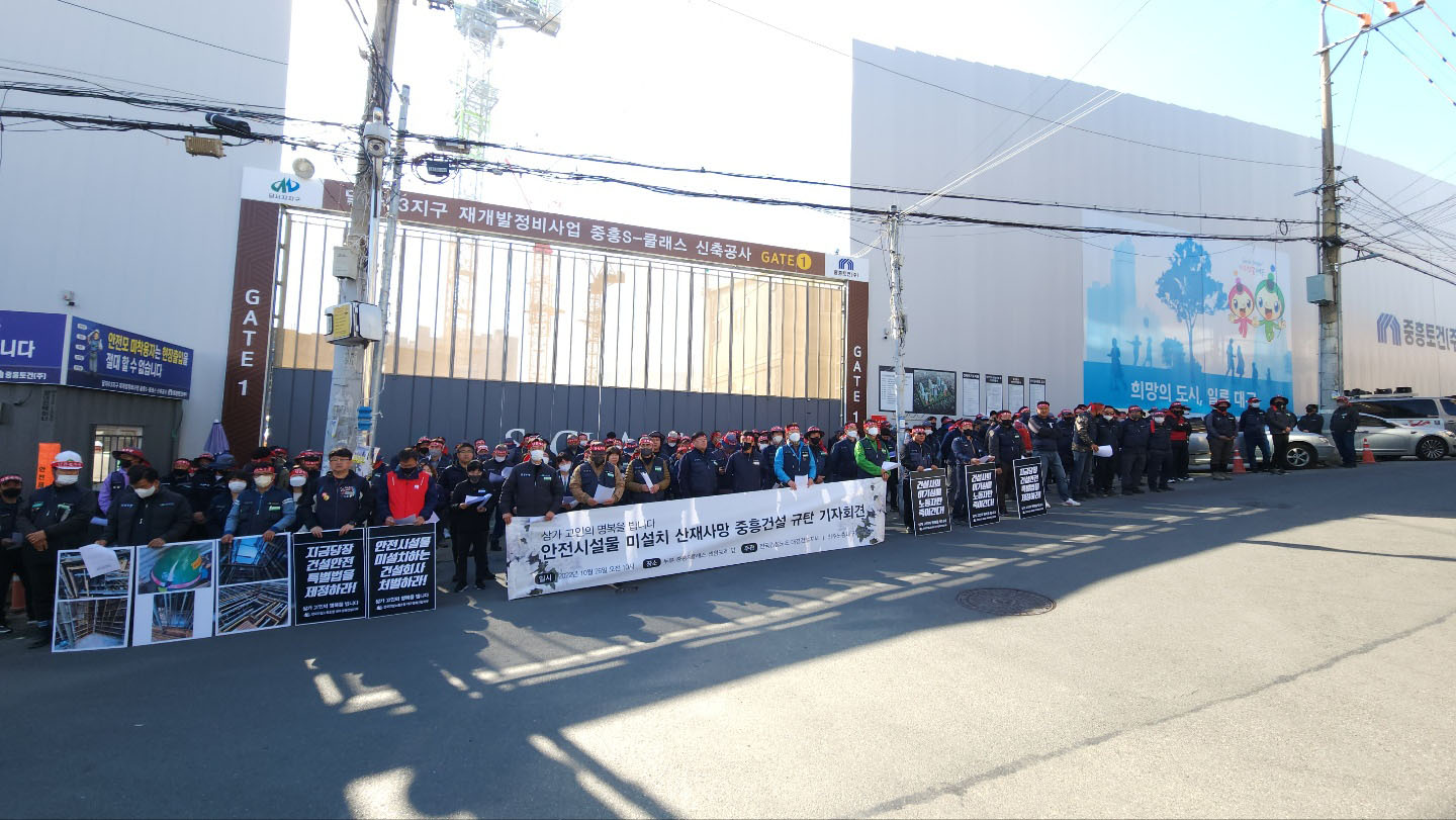 건설노조 "안전시설 미흡 산재 사망" 건설사 규탄