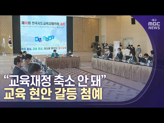 ◀앵커▶전국 17개 시도교육감들이 대구에 모였습니다. 이들은 교육감 선거 제도를 개선하고 교육재정 확보를 위한 특별위원회를 구성했는데요,유치원과 초·중·고 교육 재정을 축소하겠다는 정부 방침과 정반대입니다.교육부 장관 공백이 길어지면서 교육 현장의 갈등이 잇따라 터져 나오고 있습니다.조재한 기자가 보도합니...