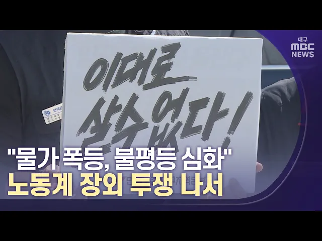 민주노총이 하반기 총력 투쟁을 선언한 가운데 대구에서는 9월 24일 오후 대구은행네거리와 수성네거리 구간에서 전국노동자대회가 열립니다.민주노총은 "윤석열 정부의 반민생·반노동 정책으로 물가가 폭등하는 등 서민이 고통받고 있다"며 "24일 집회를 시작으로 연말까지 총파업을 비롯한 총력 투쟁을 벌이겠다"고 밝혔...