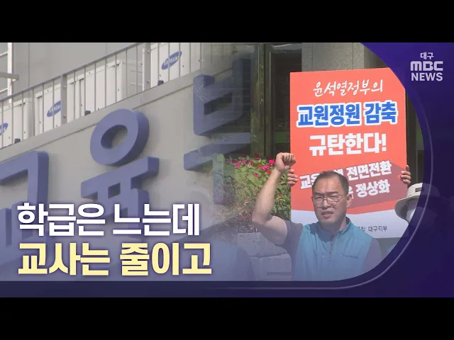◀앵커▶교사 수를 줄이라는 정부 정책, 어떻게 생각하십니까?학교 내부사정을 보면 학생 수는 줄지만, 학급 수는 오히려 늘어나고 있죠, 학급당 학생 수를 줄이는 데다 지역 편차가 크기 때문입니다.교사 수를 계속 줄이면 가뜩이나 불신받는 공교육의 질이 더 떨어질 것이라는 우려가 나오고 있습니다.조재한 기자가 보도...