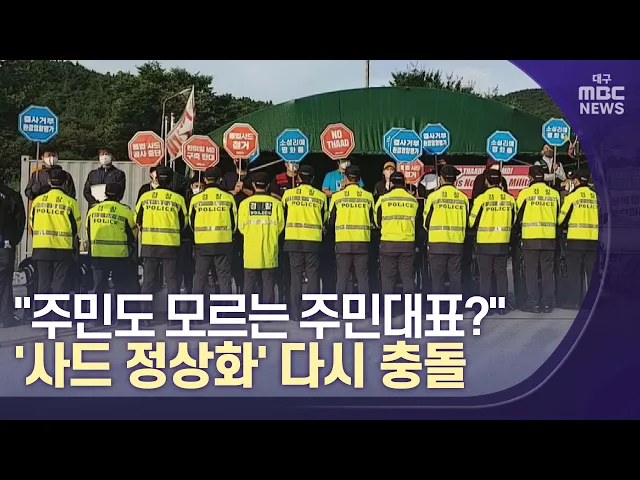 ◀앵커▶성주 사드 기지를 둘러싸고 국방부와 주민 간 충돌이 계속 이어지고 있습니다.정부는 임시 배치 상태의 사드를 정상 배치로 전환하기 위해 사드 기지 정상화를 선언하고 장비 반입을 서두르고 있는데요.주민들은 주민도 모르는 주민대표가 협상에 나서는 등 정상화가 아니라 불법이라며 반발하고 있습니다.조재한 기...