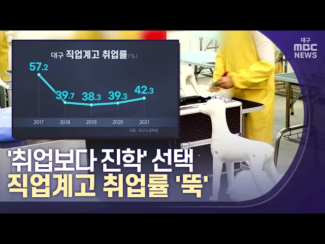 ◀앵커▶마이스터고와 특성화고는 진학보다 취업을 우선하는 직업계 고등학교입니다.그런데 취업률이 매우 저조합니다. 어떻게든 대학을 나와야 한다는 생각이 강한데다 마음에 드는 기업체도 대구에 상대적으로 적기 때문입니다.조재한 기자가 보도합니다.◀기자▶대구에는 마이스터고와 특성화고 등 취업을 목표로 하는 20개 ...
