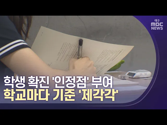 ◀앵커▶새 학기가 시작하고 한 달이 더 지난 가운데 학교마다 중간고사를 앞두고 있습니다.교육부는 코로나 19 확진자는 시험에서 배제하고 '인정점'을 주기로 했는데요. 학교에 따라 또 과목에 따라 '인정점' 기준이 제각각이어서 적잖은 논란과 혼란이 예상됩니다.조재한 기자가 보도합니다.◀기자▶교육부는 확진자는 시험...