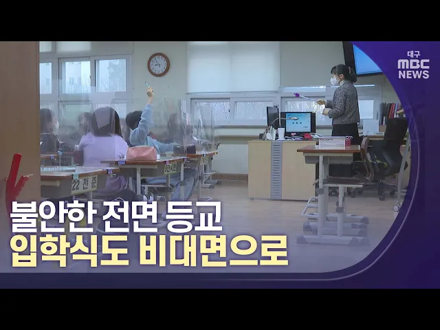 ◀앵커▶새 학기 시작과 함께 각급 학교가 전면 등교에 들어갔습니다. 최근 코로나19 확산세가 워낙 거세기 때문에 교육도 교육이지만 안전한 방역이 무엇보다 중요해졌습니다.그래서인지 개학식과 입학식은 교실에서 비대면 영상으로 진행됐는데요, '설램과 불안감'이 교차했던 개학 첫날 초등학교 표정을 조재한 기자가 보...