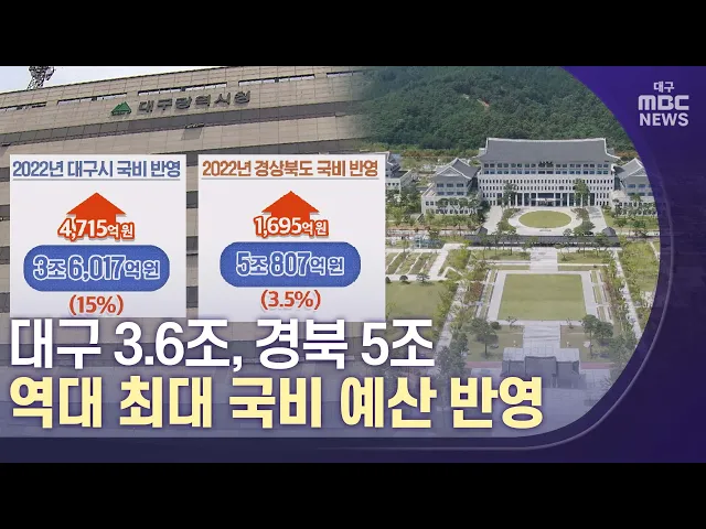 ◀앵커▶대구시와 경상북도가 내년 예산으로 역대 최대 국비를 확보했습니다.코로나19 이후 사회와 경제 등 일상 회복과 함께 미래 산업을 육성하고 강화할 수 있는 기반을 마련했다는 평가를 받습니다. 조재한 기자가 보도합니다.◀조재한 기자▶내년도 정부 예산안에 반영된 대구 사업비는 3조 6천억 원입니다. 올해보다 4천...