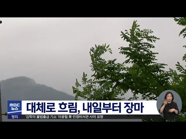대구와 경북지역은 대체로 흐리고 주말인 내일부터 장마가 시작되겠습니다.오늘 낮 기온은 대구 30도 등 25~31도로 어제와 비슷하거나 조금 낮겠습니다.주말인 내일부터는 장마가 시작되겠습니다. 장맛비는 오후부터 시작해 모레 오전까지 경북북부지역에는 밤까지 내리다 그치겠습니다.예상 강수량은 30~80mm입니다. 현재 ...