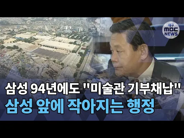 ◀ANC▶권영진 대구시장이 어제이건희 미술관 유치에 나서며 건립비 2천 500억 원을 부담하겠다고 밝혔습니다.그런데, 삼성은 이미 24년전인 지난 1997년대구에 미술관을 지겠다고 약속했던 것으로 확인됐습니다. 대구시가 건립 비용을 내겠다고 할 게 아니라 오히려 삼성 측에 미술관 건립 약속을 지키라고 요구해야 할 ...