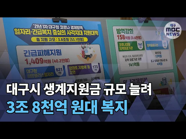 ◀ANC▶대구시가 코로나19 취약계층에게 일자리와 복지를 위주로 무려 3조 8천억 원대 지원 계획을 내놓았습니다. 그런데 공공 일자리 보급과 취약 업종 지원 등 일부를 제외하면 대부분 이미 시행하고 있는 정책이거나 일시적으로 돈을 빌려주겠다는 겁니다.자세한 내용 조재한 기자가 보도합니다. ◀END▶ ◀VCR▶[C....