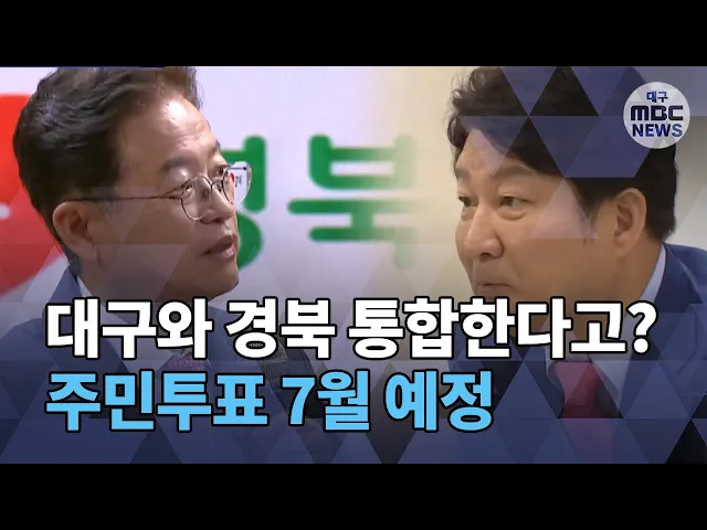 ◀ANC▶대구와 경상북도를 하나로 합치자는 통합 논의가 진행되고 있다는 사실, 아십니까?합친다면 어떤 형태로 합치고 위상이나 경제는 또 얼마나 달라질지 짚고 넘어가야 할 점이 한둘이 아닙니다.그런데도 현재 통합 계획을 보면 오는 7월쯤 시·도민 주민투표까지 할 예정입니다. 조재한 기자가 보도합니다. ◀END▶ ...