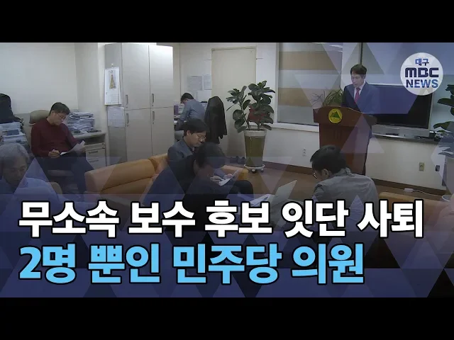 ◀ANC▶대구에서 늘 힘든 선거를 해온 민주당이 더 어려운 선거를 하게 됐습니다.미래통합당 공천 파동에 반발해 무소속으로 출마한 보수진영 후보 2명이 사퇴를 선언했습니다. 보수가 초강세인 가운데 오랫동안 지역 표밭을 다져온 보수 후보가 물러나면서 총선에 새로운 변수로 떠 올랐습니다.조재한 기자가 보도합니다...