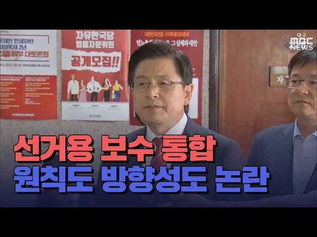 ◀ANC▶ 보수 정치권이 요즘 통합을 강조하다보니 쇄신이란 말은 쑥 들어갔습니다. 쇄신 없는 통합을 두고 총선용에 불과하다는 비판이 나오고 있고 심지어 원칙도 방향성도 없는 마구잡이 통합 추진이라는 반발까지 잇따르고 있습니다. 보도에 조재한 기자입니다. ◀END▶ ◀VCR▶ 황교안 자유한국당 대표가 보수 통합...