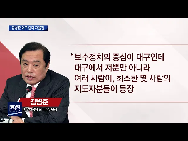 ◀ANC▶ 김병준 전 자유한국당 비상대책위원장이 내년 총선에서 대구 출마를 노리고 있습니다. 여당 대권 주자로 꼽히는 김부겸 의원과 맞붙어 보수 대표주자로 올라서겠다는 건데 당내 반발이 만만치 않습니다. 조재한 기자입니다. ◀END▶ ◀VCR▶ 지난 7월 대구에서 김병준 전 자유한국당 비대위원장 지지 모임이 출...