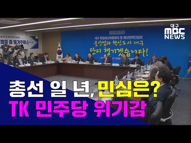 ◀ANC▶ 총선을 일 년 앞두고 여당인 민주당은 최근 대구·경북지역 지지율이 떨어지면서 위기감을 보이고 있습니다. 그러면서도 지난해 대약진을 이뤄낸 지방선거 영향이 작지 않을 것이라며 기대를 걸고 총선에 대비하고 있습니다. 보도에 조재한 기자입니다. ◀END▶ ◀VCR▶ 민주당은 2014년 지방선거에서 대구시의회...