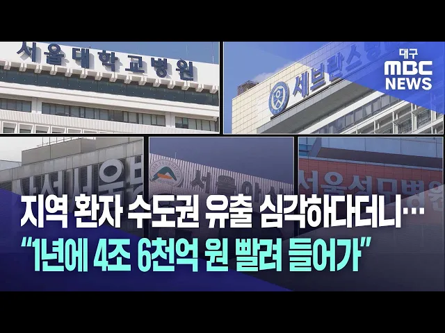 ◀앵커▶지역 환자의 수도권 유출에 따른 비용이 연간 4조 6천억 원을 넘는 것으로 나타났습니다.그만큼 지역 간 의료 불균형이 크다는 건데, 중증 환자일수록 유출이 많았습니다.지역 간 의료 불균형 해소를 위해서는 지역의 국립대병원을 육성하고 의료자원 간 협력체계 구축 등이 필요하다는 지적입니다.보도에 조재한 기...