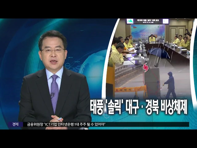 태풍 솔릭이 내일 우리나라를 관통할 것이란 예상에 대구와 경상북도는 긴급 대책회의를 하고 피해 예방에 나섰습니다. 대구시는 강한 바람과 많은 비를 동반할 것으로 보인다며 옥외 간판과 공사장 타워크레인 같은 시설물 관리와 함께 낮은 지대 주택에는 침수가 되지 않도록 안전대책을 강화하고 있습니다. 피해가 발생...