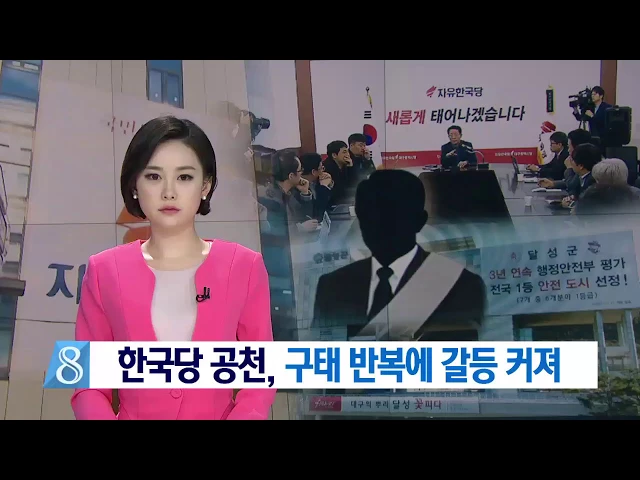 ◀ANC▶ 자유한국당 공천을 두고 진흙탕이니, 복마전이니 하는데, 전혀 근거 없다고 하기는 어려울 것 같습니다. 달성군수 자리와 여성전략공천을 두고서도 갈등은 커지고 있습니다. 보도에 권윤수 기자입니다. ◀END▶ ◀VCR▶ 자유한국당 대구시당은 조성제 후보를 달성군수로 단수 공천하기로 했습니다. 현역 김문오 ...