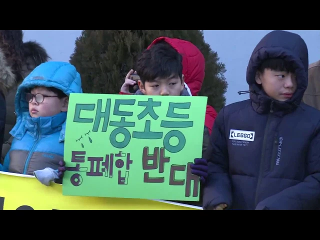◀ANC▶ 지난 해 작은 학교 살리기의 대표 성공모델로 손꼽히던 초등학교가 통폐합되면서 큰 논란이 됐었는데요. 오는 3월 통폐합이 예고된 또다른 초등학교에서도 부당한 회유와 협박이 있었다며 학부모들이 반발하고 있습니다. 도성진 기자가 보도합니다. ◀END▶ ◀VCR▶ 오는 3월 인근 학교로 통폐합이 예정된 대동...