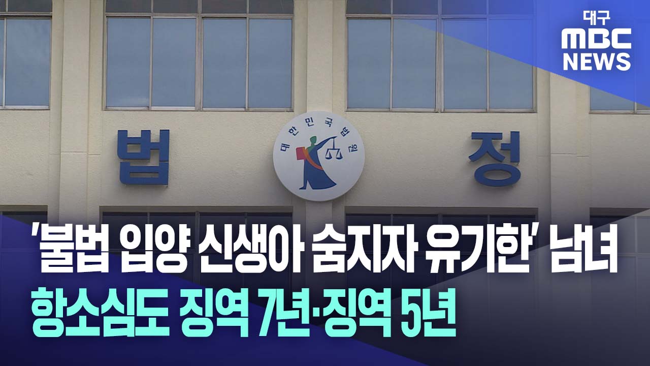 대구고법 제1형사부 정성욱 부장판사는 불법 입양한 신생아가 숨지자 유기한 혐의 등으로 기소된 30대 남녀 항소심에서 원심대로 여성에게는 징역 7년, 남성에게는 징역 5년을 선고했습니다.아이를 넘겨준 친모에게는 징역 3년의 원심을 파기하고 징역 2년 6개월을 선고했습니다. 이들은 2023년 2월 온라인으로 알게 된 미...