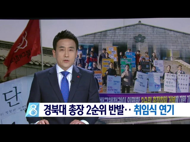 ◀ANC▶ 경북대학교 총장 2순위자 임용을 둘러싼 학내 반발이 최순실 국정농단사태와 맞물려 계속되고 있습니다. 내일로 예정됐던 총장 취임식도 무기한 연기됐습니다. 보도에 김은혜 기자입니다. ◀END▶ ◀VCR▶ 경북대 교수와 학생들은 박근혜 정권이 2년여의 총장공백사태에 이어 2순위 후보자를 총장으로 임용하면...