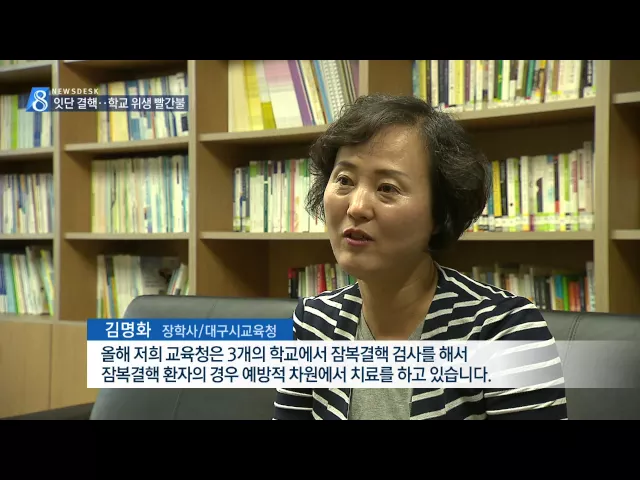 ◀ANC▶ 대구의 한 고등학교 교사가 결핵 판정을 받아 격리조치됐다는 소식,. 어제 전해드렸는데요. 또다른 초등학교에서도 교사 한 명이 결핵에 감염된 것을 확인돼, 추가 감염 확산이 우려되고 있습니다. 김은혜 기자입니다. ◀END▶ ◀VCR▶ 대구의 한 고등학교 교사가 지난 달 26일 결핵 확진 판정을 받아 격리조치 ...