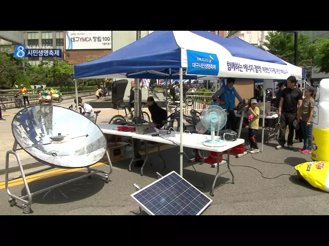 ◀ANC▶ 지구의 날을 기념해 우리 환경을 되돌아보고 지키기 위한 대구시민생명축제가 열렸습니다. 자동차가 사라진 도심도로에는 자전거가 대신했고 아이들은 자전거를 타며 직접 전기를 생산해 보기도 했습니다. 보도에 조재한 기자입니다. ◀END▶ ◀VCR▶ 대구의 가장 번화가 가운데 하나인 반월당에서 수백대의 자...