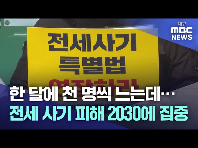 ◀앵커▶전세 사기 특별법 시한 종료가 얼마 남지 않은 가운데 전세 사기는 계속해서 발생하는 것으로 나타났습니다.특히, 피해자는 10명 가운데 7명이 2030 청년세대로 나타났습니다.사회 갓 진출한 청년세대 희망이 꺾이지 않도록 특별법을 개정하고 시한을 연장해야 한다는 목소리가 커지고 있습니다. 보도에 조재한 기자...