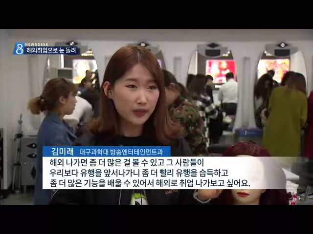 ◀ANC▶ 취업난이 갈수록 심해지고 있는 가운데 대학생들의 해외취업이 부쩍 늘고 있습니다. 대학도 적극 장려하면서 취업 업종과 진출 지역도 다양해지고 있습니다. 보도에 조재한 기자입니다. ◀END▶ ◀VCR▶ 2년전 교육부의 세계로 프로젝트 시행으로 대학생들의 해외취업이 급증하고 있습니다. 치기공이나 간호처럼...