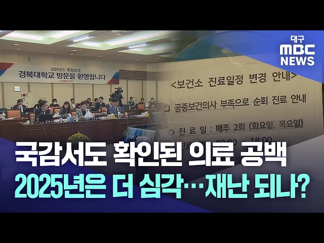 ◀앵커▶한창 진행하고 있는 국정감사에서도 의료 공백이 좀처럼 해결의 실마리를 보이지 않고 있습니다.해결은커녕 갈수록 시간이 갈수록 점점 커지고 있습니다. 신규 의사 배출은 되지 않는 가운데 병원 경영 위기는 더욱 심각해지고 환자들은 진료받기가 어려워지고 있습니다. 보도에 조재한 기자입니다. ◀기자▶2024년 의...