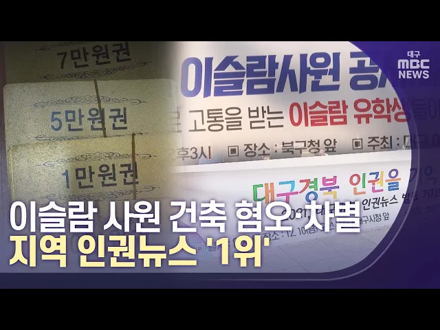 ◀앵커▶올해 지역에서도 인권과 관련한 뉴스가 많았는데요. 대구경북 주민들이 설문조사를 해보니 이슬람 사원 건축과 관련한 뉴스가 제일 중요한 뉴스로 꼽혔습니다.이주노동자에게 현금 대신 쿠폰을 임금으로 준 영천의 한 인력 중개업자의 징역형 선고 소식도 중요 뉴스로 선정됐습니다.양관희 기자가 보도합니다.◀양관희...